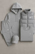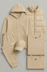 Featuring a hoodie, matching pants, a lightweight puffer jacket, and a tone-on-tone T-shirt, it delivers a modern, elegant, and ready-to-wear look for every season.